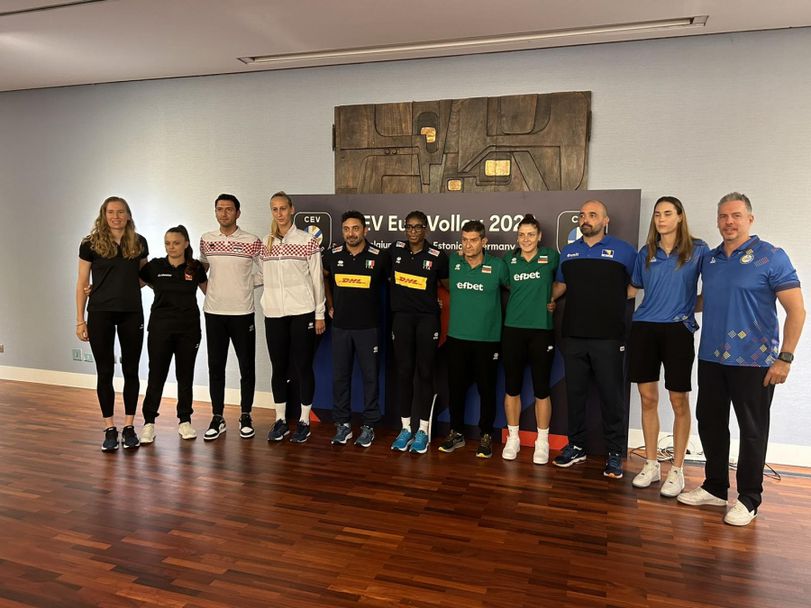 Лоренцо Мичели и капитанът ни Мирослава Паскова застанаха пред журналистите в хотел „Nh Centro" на традиционния медиен брифинг преди старта на втората част от груповата фаза на Европейското първенство.