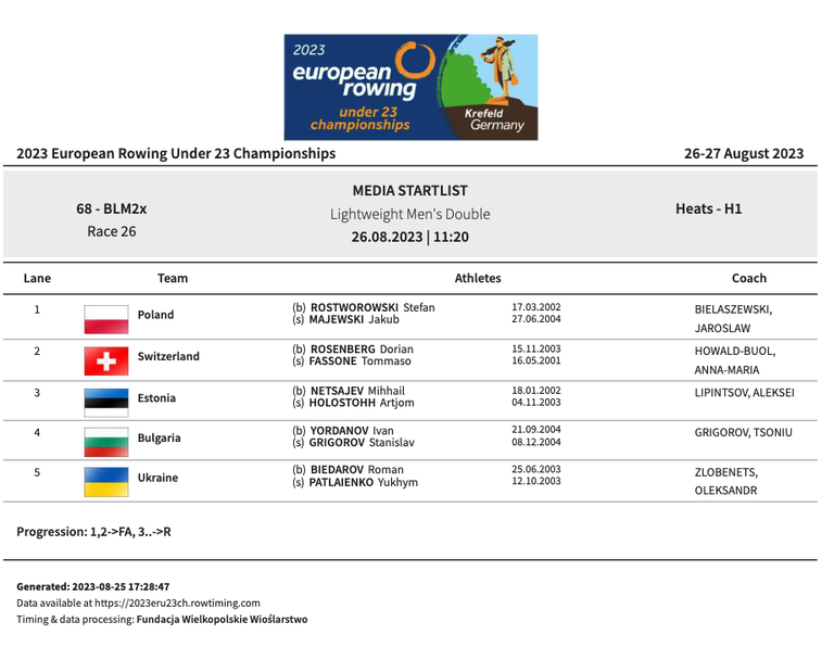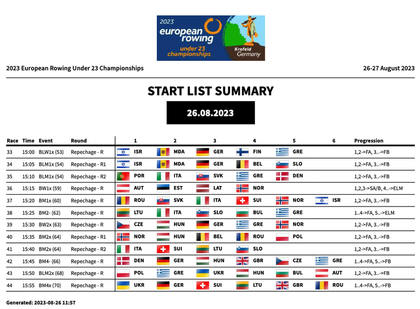 Двете лодки на България, които участват на Европейското първенство по гребана за младежи и девойки до 23 години Крефелд (Германия), ще преминат през репешажи в опит да се класират на финали.