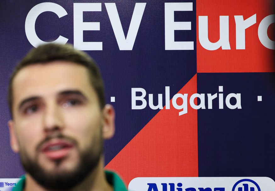 Националът Мартин Атанасов говори във Варна пред медиите ден преди първия двубой на отбора ни на Евроволей 2023.