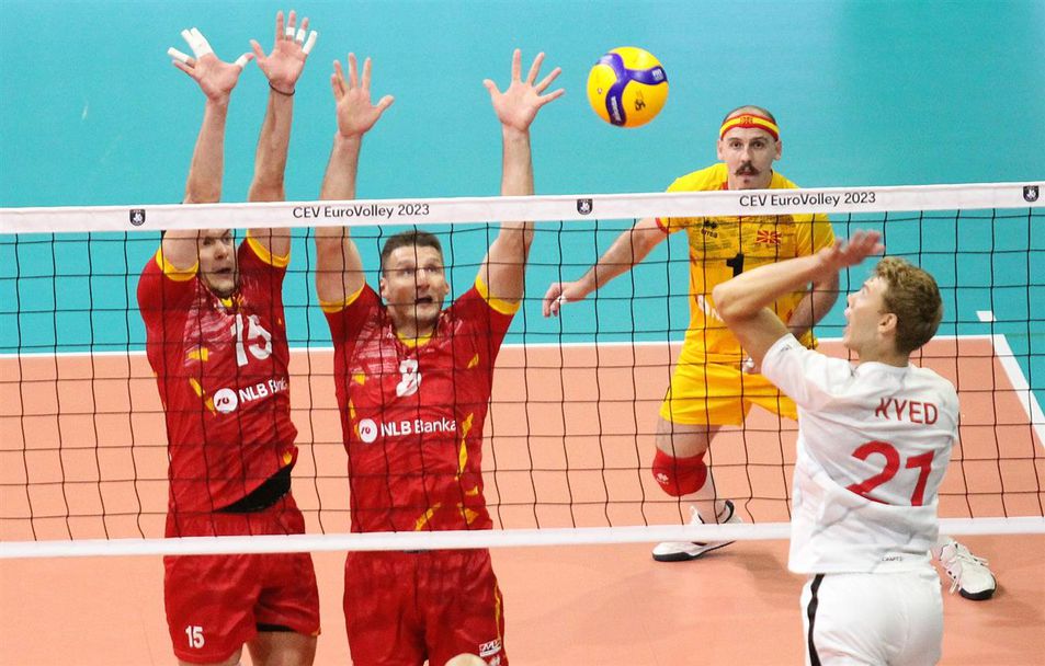 Един от съдомакините на ЕвроВолей 2023 за мъже - Северна Македония, започна участието си на турнира с победа. Играчите на треньора Йошко Миленкоски направиха обрат и се наложиха над Дания с 3:1 (22:25, 25:22, 25:19, 25:22) в откриващия мач в Група С на първенството, игран късно снощи пред пълната с близо 2500 зрители зала "Борис Трайковски" в Скопие.