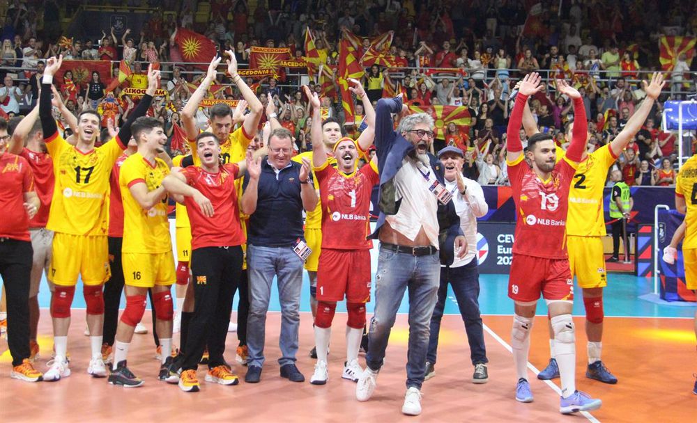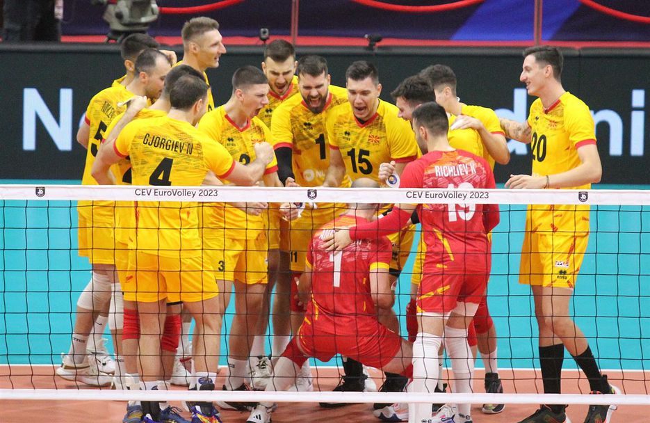 Мъжкият национален отбор на Северна Македония по волейбол влезе в топ 16 на европейското първенство, на което е съдомакин. Воденият от Йошко Миленкоски тим надигра Черна гора с 3:0 (25:22, 25:18, 25:20) в мач от група С, изигран в зала "Борис Трайковски" в Скопие пред 5100 зрители.