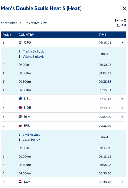 Българите финишираха на 5-о място в 5-а предварителна серия с 6:36.80 минути. Репешажите на двойка скул са в понеделник от 18.15 часа българско време.