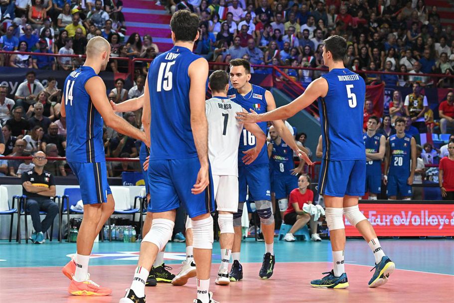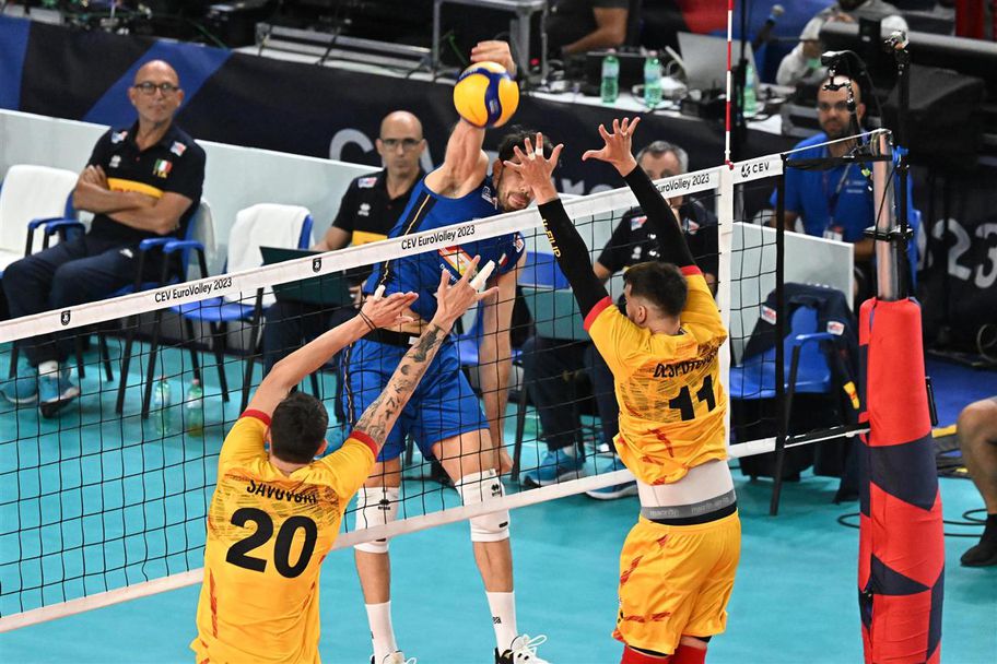 Настоящият шампион Италия без проблеми се класира напред към 1/4-финалите на ЕвроВолей 2023 за мъже. Играчите на Фердинандо Де Джорджи буквално отнесоха друг от съдомакините на първенството - Северна Македония, с 3:0 (25:20, 25:12, 25:15) в 1/8-финален мач от турнира, игран тази вечер пред 5000 зрители в зала "Пала Флорио" в Бари.