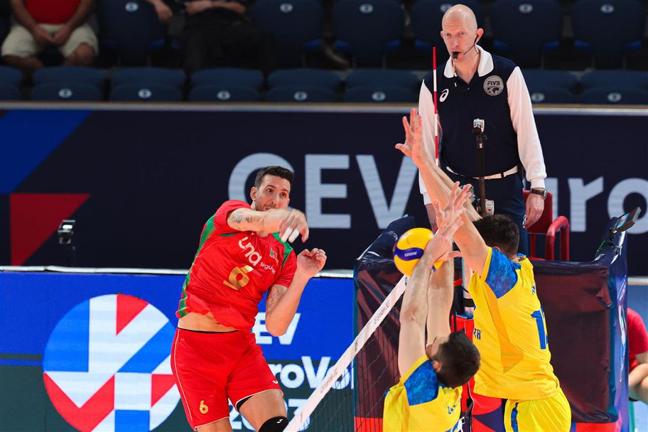 Мъжкият национален отбор на Украйна продължава напред към 1/4-финалите на Европейското първенство. Воденият от селекционера Угис Крастинс тим надигра категорично Португалия с 3:0 (25:20, 25:19, 25:22) в 1/8-финална среща, играна тази вечер пред едва около 600 зрители в зала "Конгресна" на ДКС във Варна.