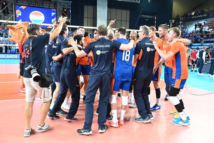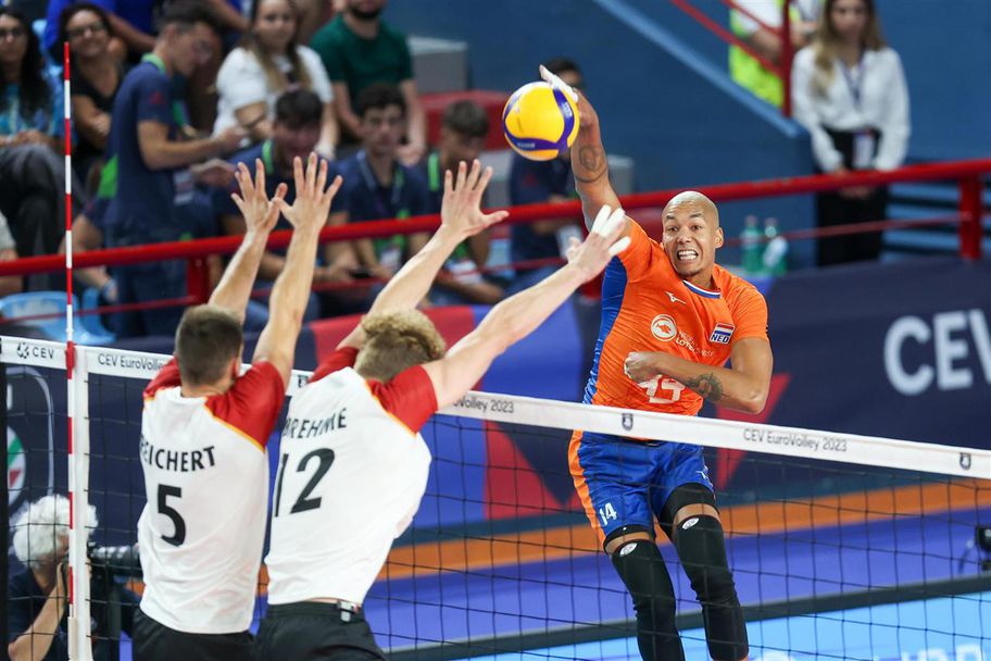 Волейболистите от националния отбор на Нидерландия продължават напред към 1/4-финалите на ЕвроВолей 2023 след изключително измъчена победа. Момчетата на италианския селекционер Роберто Пиаца надделяха много трудно над Германия с 3:2 (25:20, 25:23, 22:25, 18:25, 15:12) в среща от 1/8-финалите на шампионата, играна тази вечер пред близо 4000 зрители в зала "Пала Флорио" в Бари (Италия).