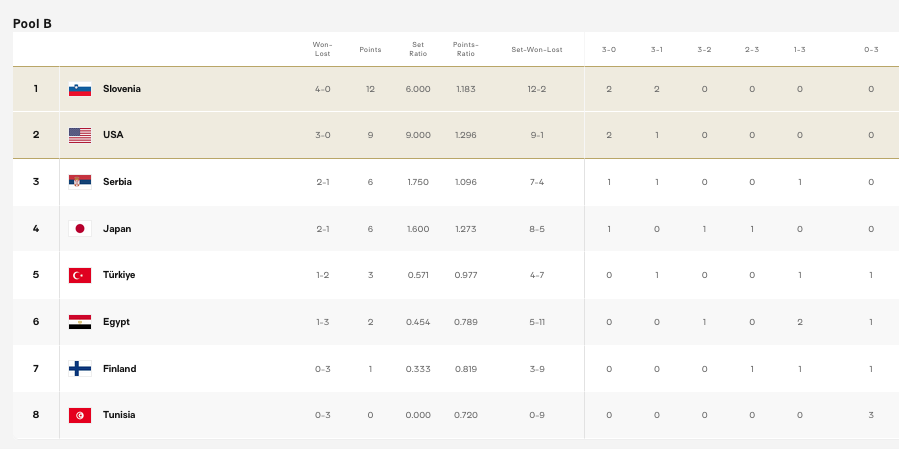 Египет допусна трето поражение на турнира и с актив от 2 точки (1 победа, 3 загуби) е на 6-о място.