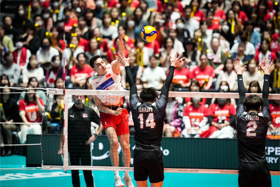 Волейболистите от националния отбор на Япония все още имат шансове да спечелят олимпийска квота за Париж 2024, след като записаха 3-а победа на турнира в Група В от квалификациите, на който са домакини. Воденият от Филип Блейн тим се справи с коравия отбор на Турция с категоричното 3:0 (25:15, 25:20, 25:19) в 4-ия си мач от турнира, игран рано този следобед пред над 10 000 зрители в зала "Йойоги Нешънъл Джимнезиум" в столицата Токио.