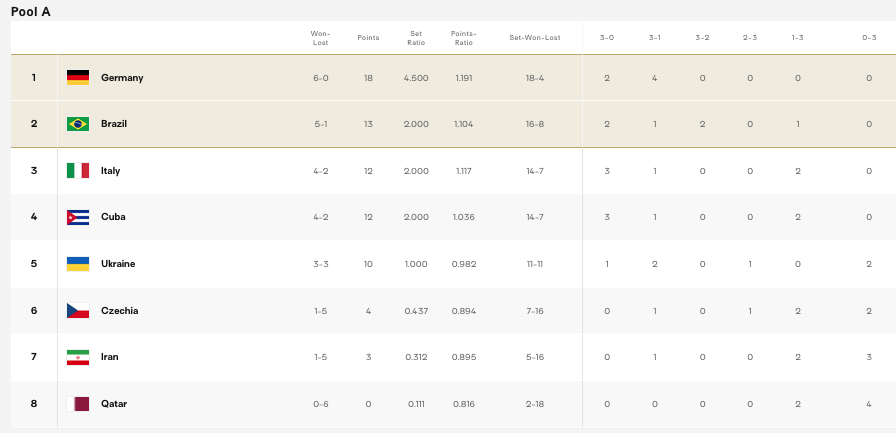 “Лудата банда” на Куба също запази шанс за класиране на Игрита в Париж 20224, но затова първо Италия трябва да победи Бразилия с 3:2, а Куба трябва да постигне успех над Иран с 3:0.