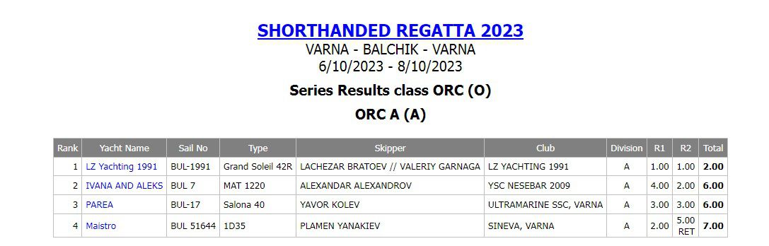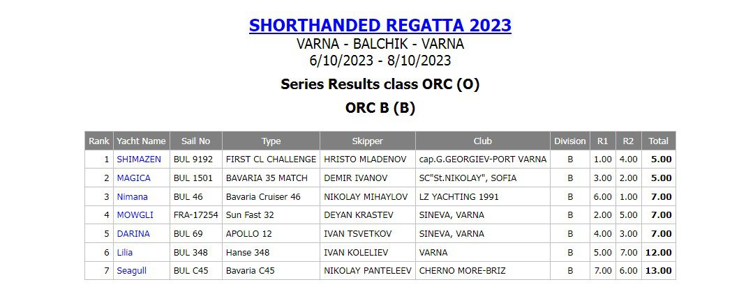 Рекорден брой двучленни екипажи взеха участие в седмото по ред издание на Shorthanded Regatta 2023, което се проведе между 6 и 8 октомври. Общо 15 яхти над 28 фута се пуснаха по дистанцията Варна-Балчик, Балчик-Варна.