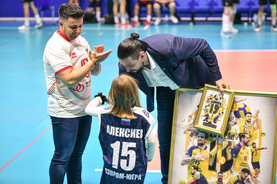 След това Алексиев получи и специална изненада, поднесена му от кръщелницата му, която облечена в неговия екип, му връчи специално изработен колаж, в негова чест.