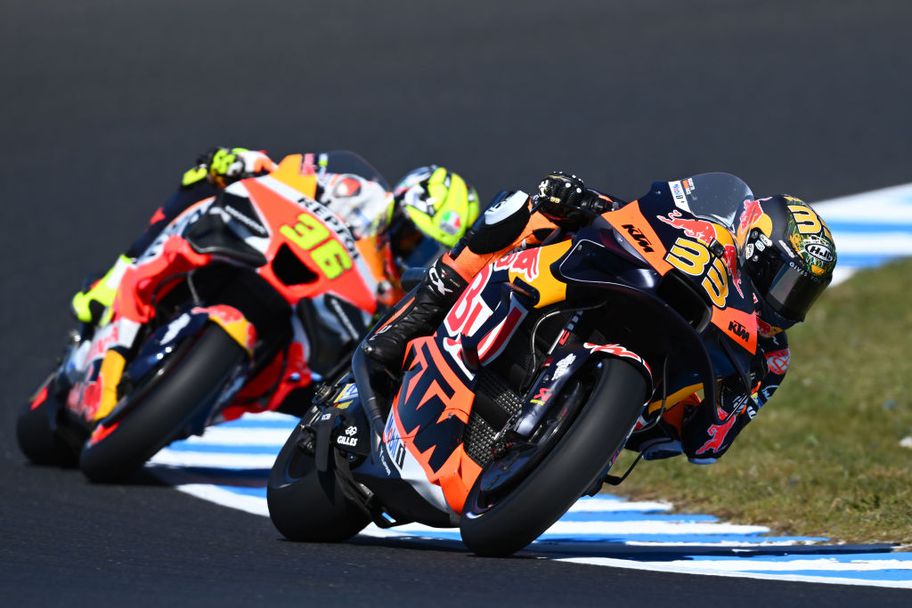 Двамата заводски пилоти на КТМ Брад Биндър и Джак Милър оглавиха класирането във втората свободна тренировка за Гран При на Австралия на Филип Айлънд. Биндър постигна 1:27.993 минути в най-бързата си обиколка в края на сесията, а Милър остана на 0,148 секунди от него.