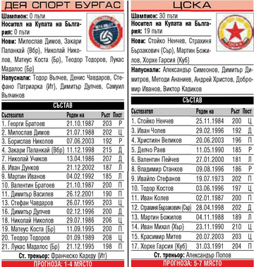 Отново в голямата битка се очаква да влезе и Дея спорт. Амбициозният бургаски клуб ще опита да изиграе опровержение на хитовото заглавие „Няма място за старите кучета“. Към добре познатите бивши шампиони с Нефтохимик Валентин и Георги Братоеви, Николай Учиков и Мартин Иванов се присъединиха Теодор Тодоров и Николай Николов. Тази група силни характери ще се опита заедно с непознатите бразилци Лукас Мадалоз и Матеус Коста и британеца Закари Мушеби да изиграе важна роля в битката за медалите, а турнир като този за купата изглежда точно по вкуса и силите на отбора, воден от Франческо Кадеду. Заради лична издънка с документацията италианецът