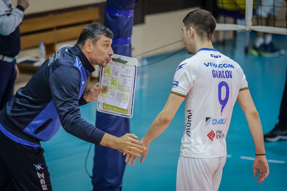 Успехът в двубоя за “сините” дойде след решаващи точкови блокади на Светослав Гоцев.