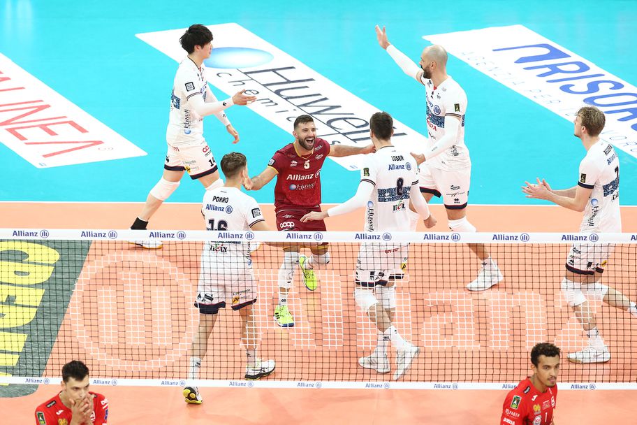 Казийски и компания удариха у дома вицешампиона Кучине Лубе (Чивитанова), с националът Александър Николов в състава, с 3:0 (25:21, 27:25, 25:21) в един от най-интересните мачове от 4-ия кръг на шампионата, игран тази вечер пред над 4000 зрители в зала "Алианц Клауд".