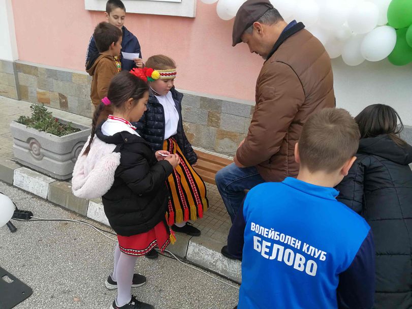 Макар и да бе един от последните дни на месец ноември слънчево и топло време посрещна проекта "С волейбол на училище", което позволи провеждането на открита тренировка на външното и реновирано игрище в двора. Демонстрациите предизвикаха огромен интерес от страна на деца и родители, които проследиха отблизо наставленията на треньор Цоклинов. Най-голяма бе радостта за новите топки, които получиха учениците. Присъстващите деца си взеха много автографи от гостите от БФВ, а едно от момченцата, което бе зарадвано с подпис върху лист от тетрадката си от Николай Иванов възкликна пред съучениците си: