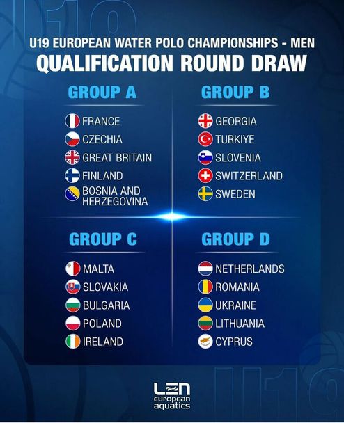 България е в група "С" с Малта, Словакия, Полша и Ирландия в квалификациите за Европейко първенство по водна топка до 19 години.