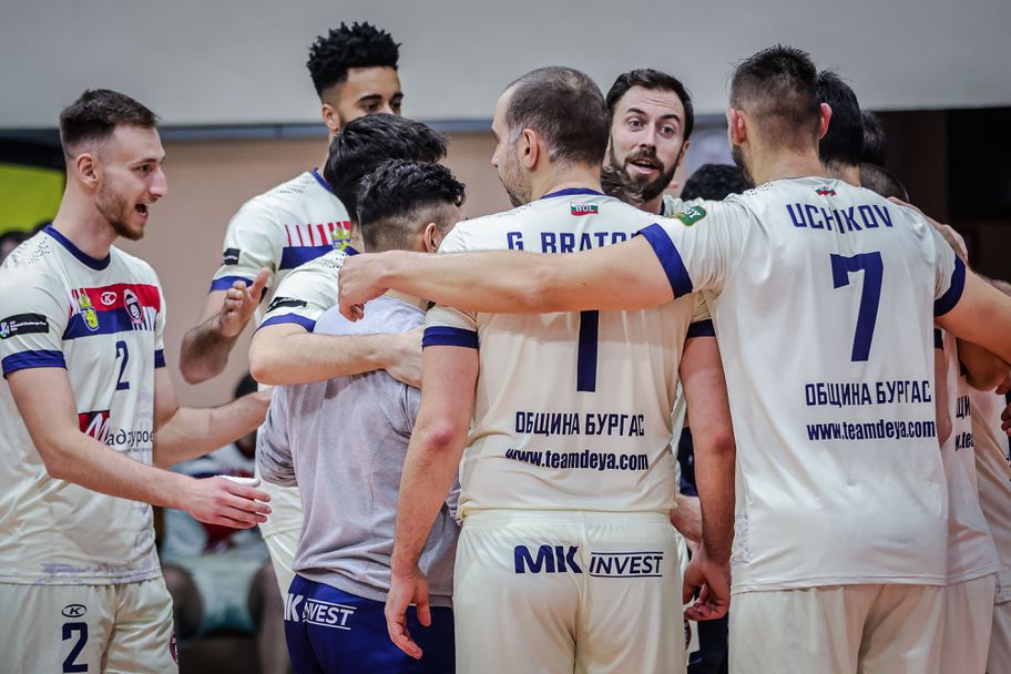 Отборът на Дея спорт (Бургас) остана начело в класирането на Efbet Супер Волей, след като записа 4-а поредна и общо 8-а победа от началото на сезона. Бургазлии удариха като гости коравия тим на Пирин (Разлог) с 3:0 (25:23, 25:22, 25:20) в мач от 10-ия кръг на първенството, игран тази вечер пред над 200 зрители в зала "Септември".