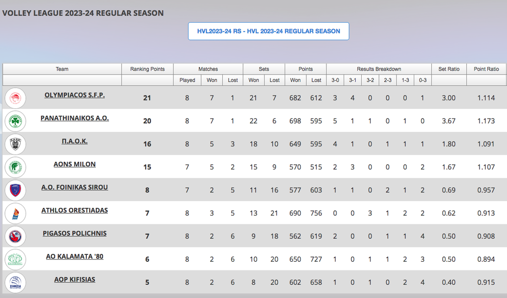 МИЛОН (АТИНА) - ОЛИМПИАКОС (ПИРЕЯ) 3:0 (25:17, 25:18, 25:21)