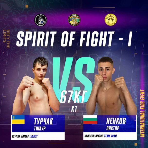 Общо единадесет срещи са включени във файт картата на събитието "Spirit of Fight", което ще се проведе на 13-и януари във Варна. Девет от тях участват и в турнир за финансова премия в размер на 900 долара. Две от срещите ще демонстративни, но с излъчване на победител. Първите пет мача ще са при по-големите, като в тях ще участват състезатели с богата визитка. Един от бойците е Виктор Ненков от СК Вокил, който през 2023 година няма нито една загубена среща и е настоящ Европейски шампион при кадети до 16 години. Негов съперник ще бъде Тимур Туркач, който е действащ шампион на Украйна две поредни години и също е без загуба.