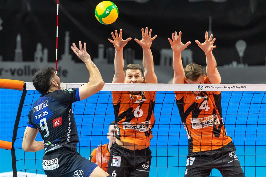 Отборът на Берлин Рисйклинг Волей постигна успех над френския Тур с 3:1 (25:17, 20:25, 25:13, 25:22) в първата плейофна среща от Шампионската лига за мъже, който се игра пред 4387 зрители в легендарната зала “Макс-Шмелинг Хале”.