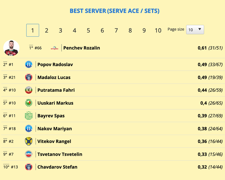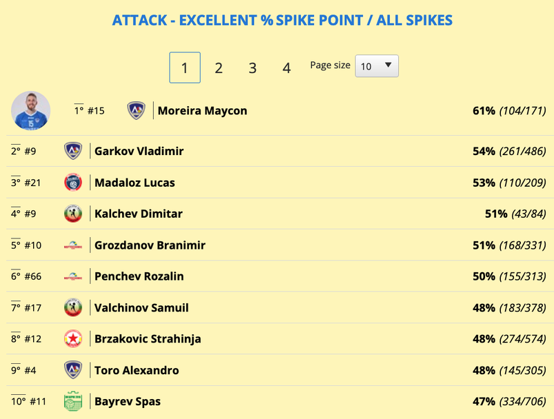 Розалин Пенчев от шампиона Нефтохимик 2010 (Бургас) пък е №1 по ефективност – точки от начален удар средно за гейм - 0,61.