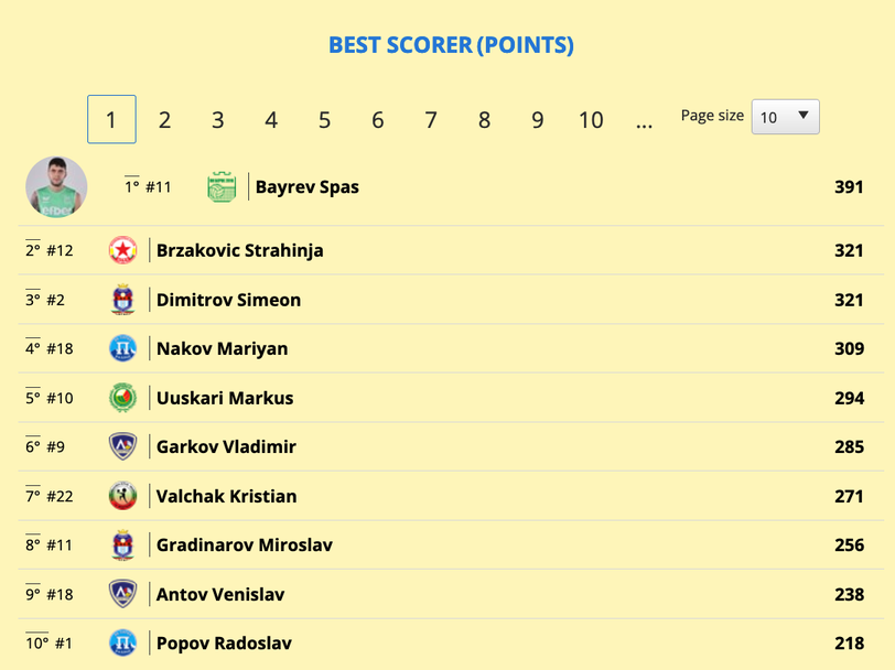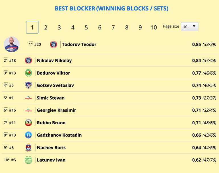 След него е капитанът на Пирин (Разлог) Радослав Попов - със средно 0,49. Тройката допълва Лукас Мадалоз от Дея спорт (Бургас).