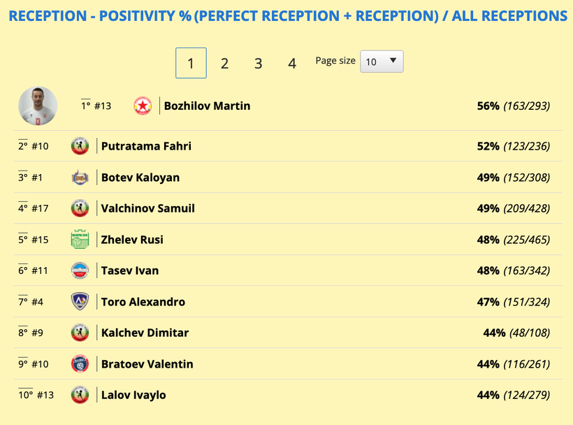Най-ефективен на посрещане е либерото на ЦСКА Мартин Божилов - с 56%.