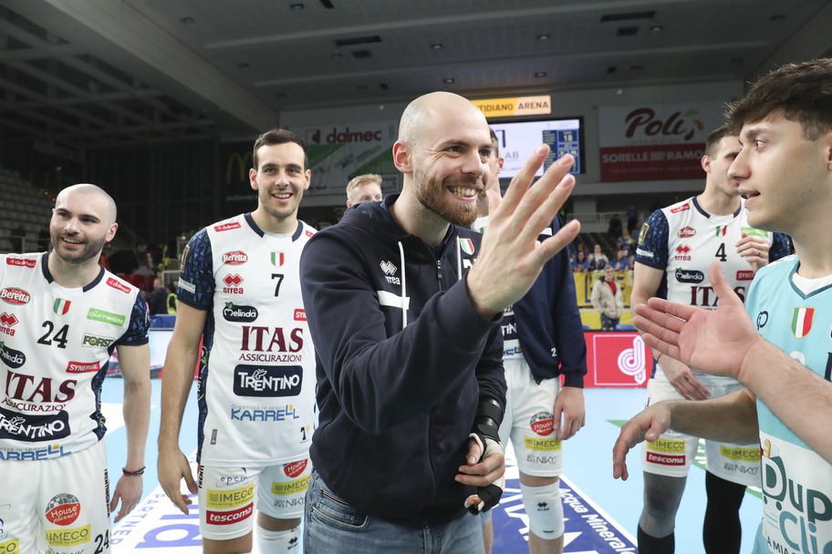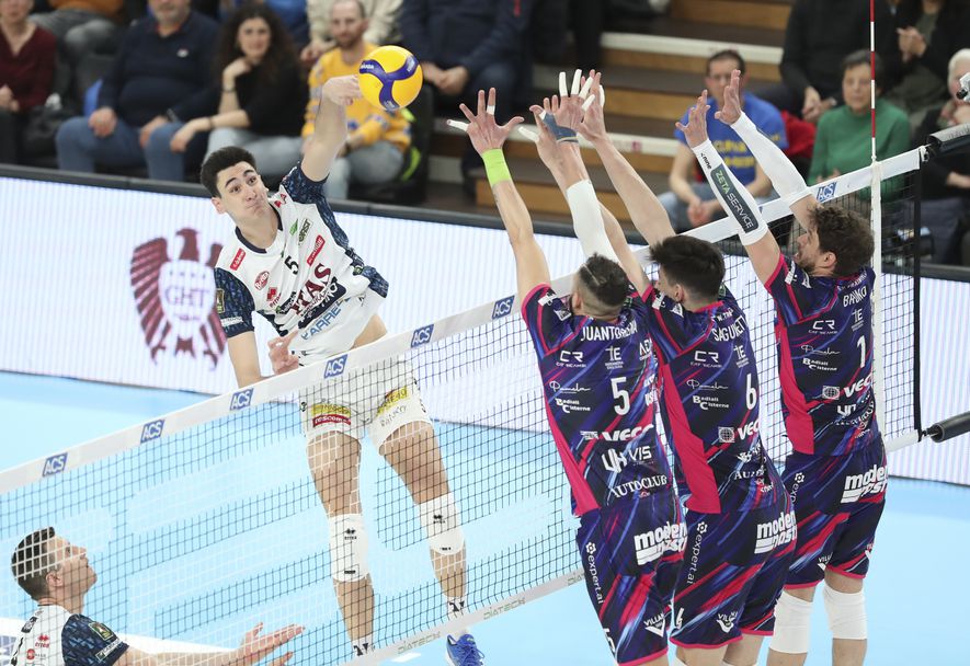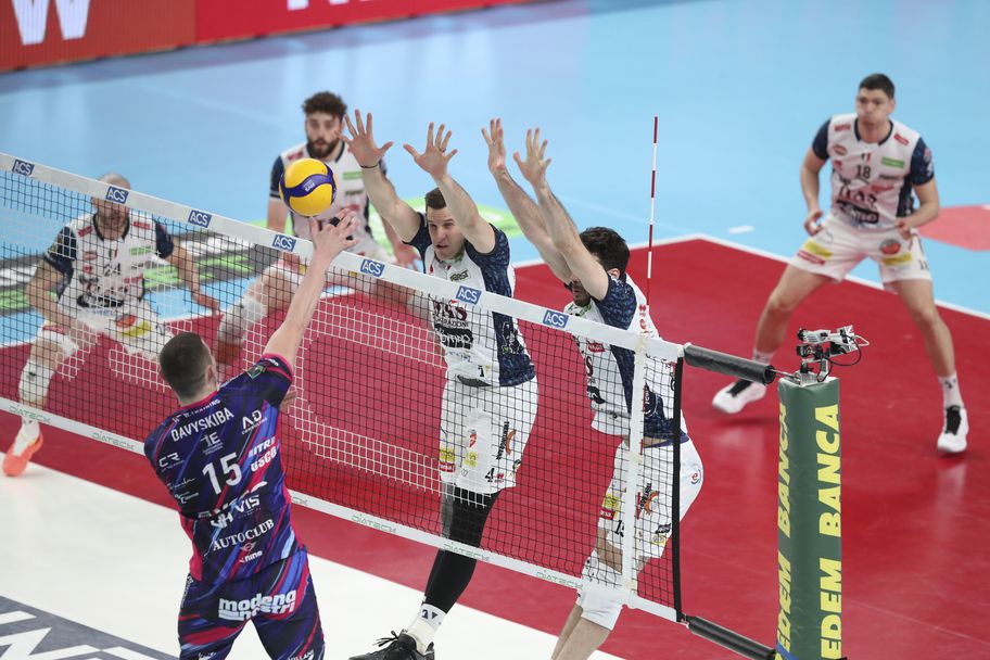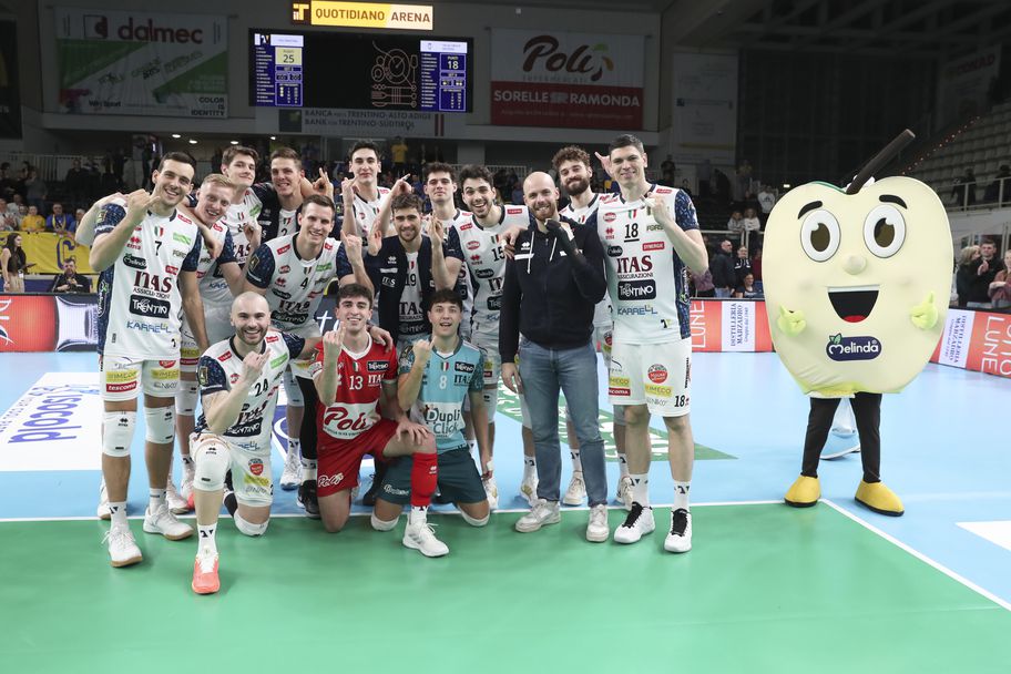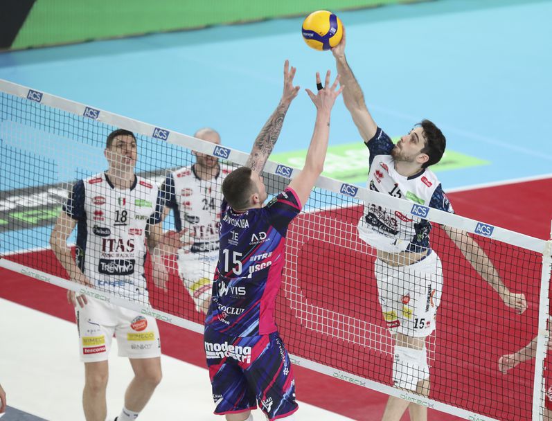 Шампионът на Италия Трентино Итас (Тренто) победи Валза Груп (Модена) с 3:0 (25:23, 25:18, 25:18) в първата 1/4-финална плейофна среща от Суперлигата на Италия,, която се игра пред 2131 зрители в “ilT quotidiano Arena ”.