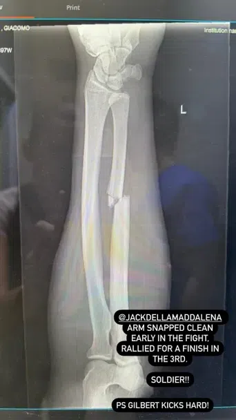 Професионалният ММА боец Джак Дела Мадалена (17-2) записа най-важната победа в кариерата си досега, но с цената на счупена ръка. През изминалия уикенд австралиецът участва в основен двубой от събитието UFC 299, което се проведе в Маями. Той нокаутира бившия претендент за титла в полусредна категория на организацията Джилбърт Бърнс в третия рунд. Мениджърът на боеца, Тим Симпсън, споделя, че Мадалена е изиграл втория и третия рунд със счупена кост на лявата предмишница.