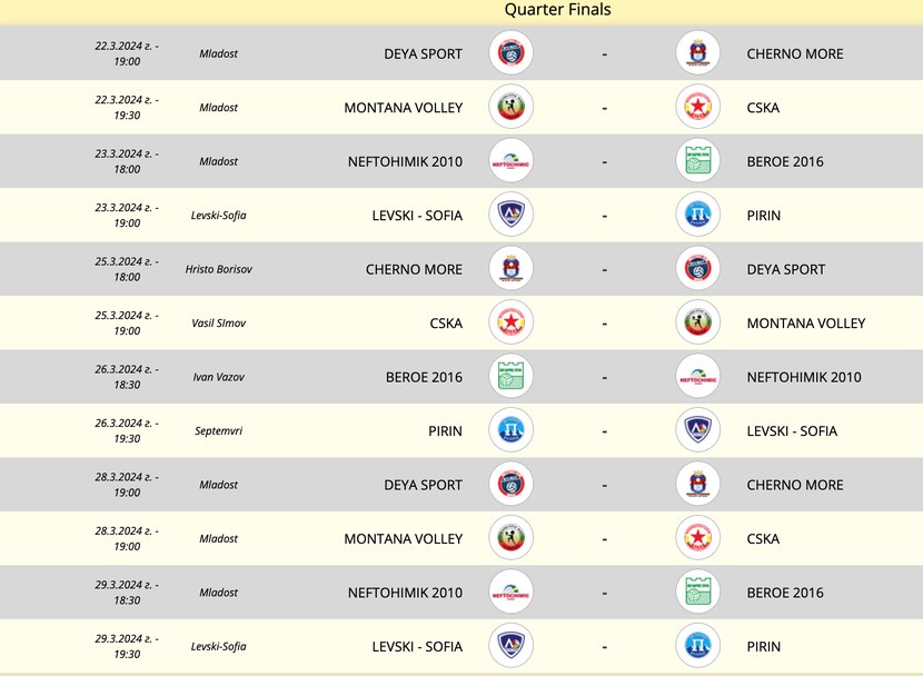 Носителите на Купата на България от Дея спорт (Бургас) приемат Черно море (Варна) в първата среща от 1/4-финалните плейофи в ефбет Супер Волей.