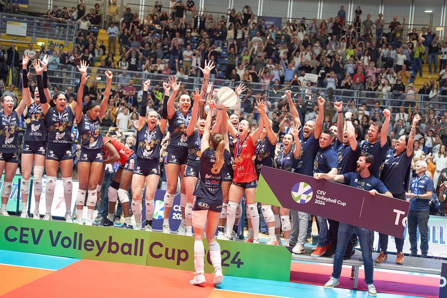 Италианският тим Реале Мутуа Фенера (Киери) триумфира с трофея във втората по сила европейска надпревара - Купата на Европейската конфедерация по волейбол (CEV).