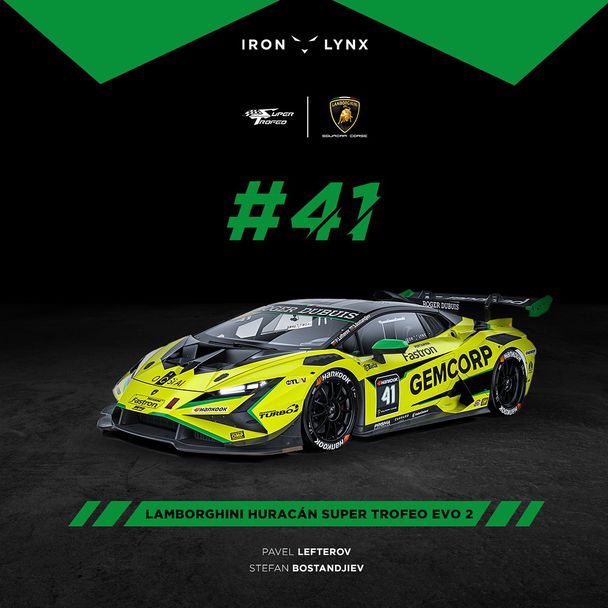 Лефтеров и Бостанджиев ще са съотборници, както беше и миналата година, но сега двамата ще карат Хуракан Супер Трофео Ево 2 с №41 на тима Iron Lynx. През 2023 двамата се състезаваха в германския GT4 шампионат.