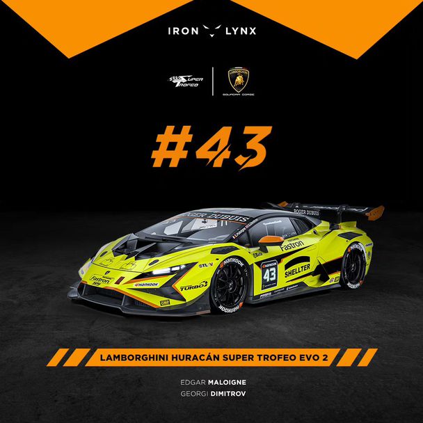 За Iron Lynx ще се състезава и Георги Димитров, който след британската Формула 4 през миналата година се състезава с LMP3 прототип, макар и с ограничена програма. Димитров ще е зад волана на Хуракан-а с №43, а негов съотборник ще е Едгар Малоин.