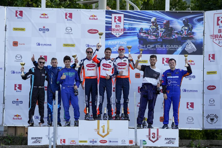 Въпреки променливите условия и множеството неизвестни фаворитите от Lacrima Racing Team Димитър Гайдов, Станислав Неделчев и Николай Лисев все пак триумфираха на финала в “ЕКО 8 часа на България”. Само на 19,9 секунди зад тях завършиха пилотите на Eventa Racing Диян Костадинов, Виктор Николов и Веселин Паунов, а Георги Попчев и Росен Тодоров от Plovdiv Racing останаха трети, въпреки че пет минути преди финала имаха две секунди преднина в спора за втората позиция.