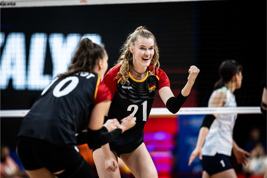 За Германия Камила Вайцел (2 блока, 2 аса и 56% ефективност в атака) и Кимбърли Дрюниок (50% ефективност в атака) реализираха 13 и 12 точки.