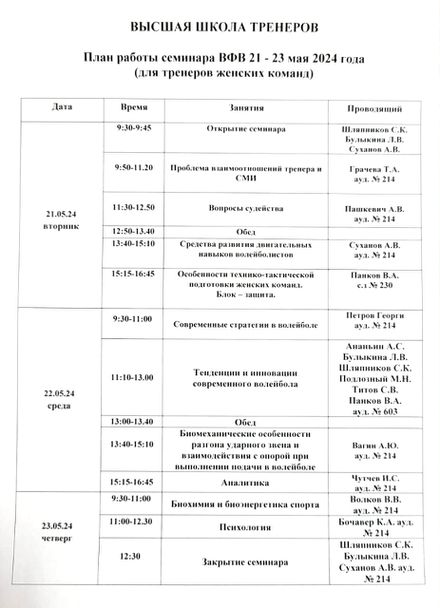 Конференцията в Москва се проведе под ръководството на бившият селекционер на мъжкия национален отбор на Русия Сергей Шляпников, а сега председател на Треньорско-методическата комисия на Всерусийската федерация по волейбол.