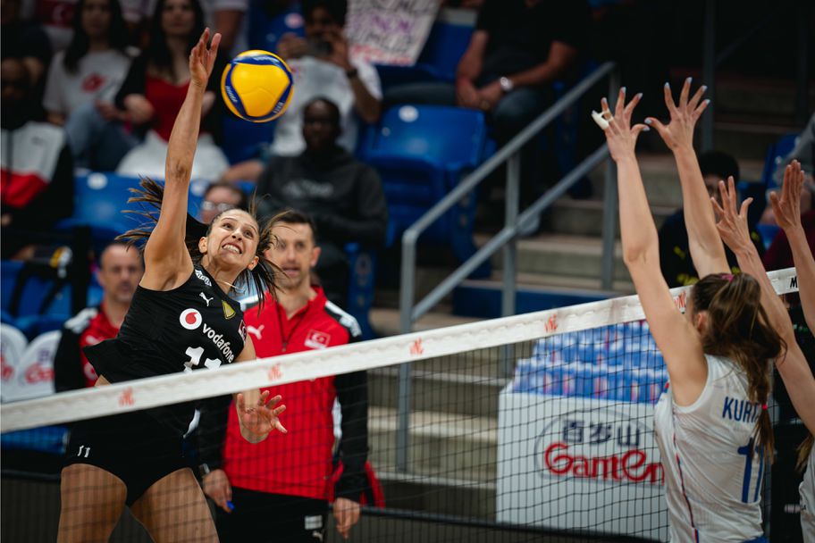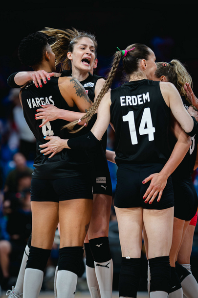 Европейските шампионки и победителки във Волейболната лига на нациите от 2023 година от Турция победиха световните шампионки от 2022 година от Сърбия с 3:1 (25:18, 33:31, 21:25, 25:21) в мач от Група 4 на VNL в Арлингтън (САЩ).