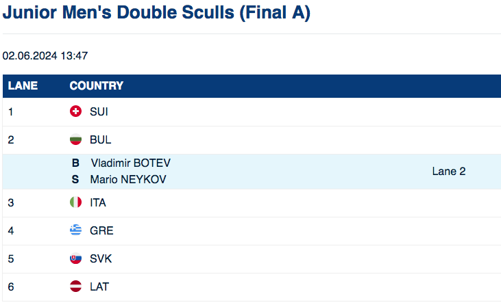 Владимир Ботев и Марио Нейков се класираха на финал “А” на двойка скул при юношите на Европейското първенство до 19 години в Крушвица (Полша).