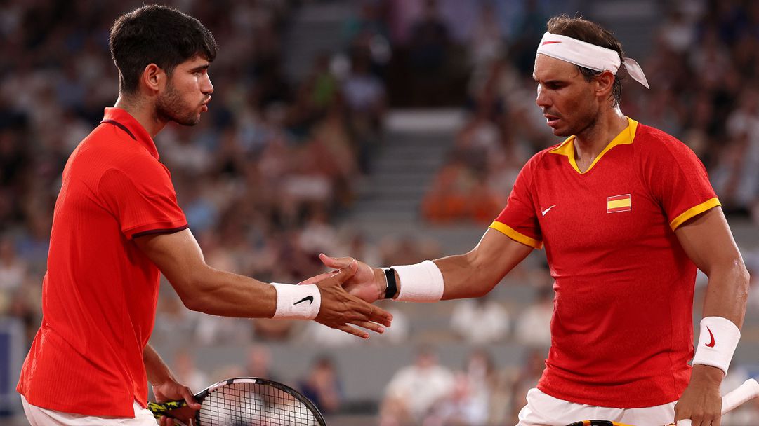 Надал се обърна и видя Карлос Алкарас, негов испански съотборник и наследник, който искаше да прошепне нещо. Надал, 38, и Алкарас, 21, може да споделят един корт за последен път във вторник, когато Испания трябва да се изправи срещу Нидерландия на четвъртфиналите на закрит твърд корт в Малага.