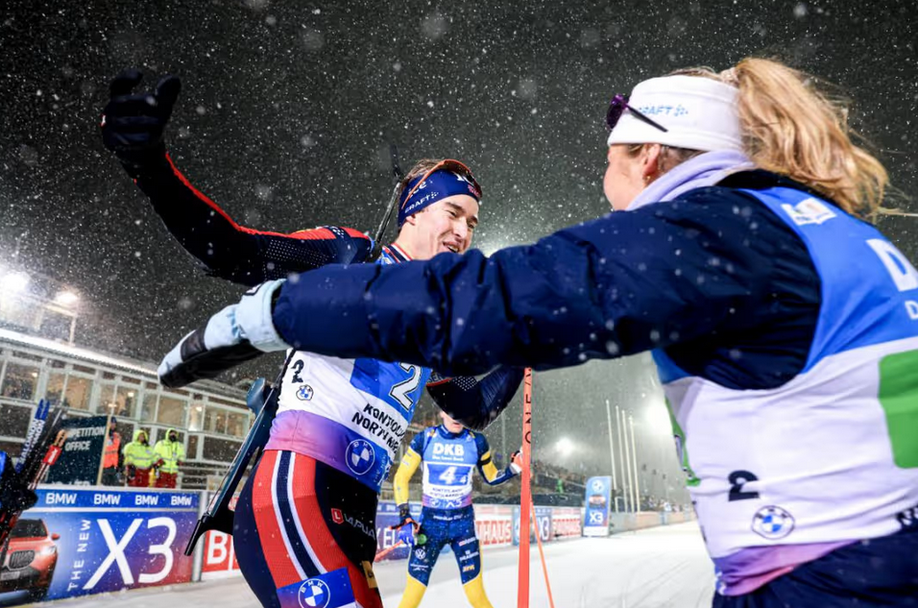 Каролине Кнотен, Ингрид Тандреволд, Йоханес Дале, Вебьорн Сьорум финишираха за 1:09:59.6 часа с десет допълнителни патрона и без наказателна обиколка.