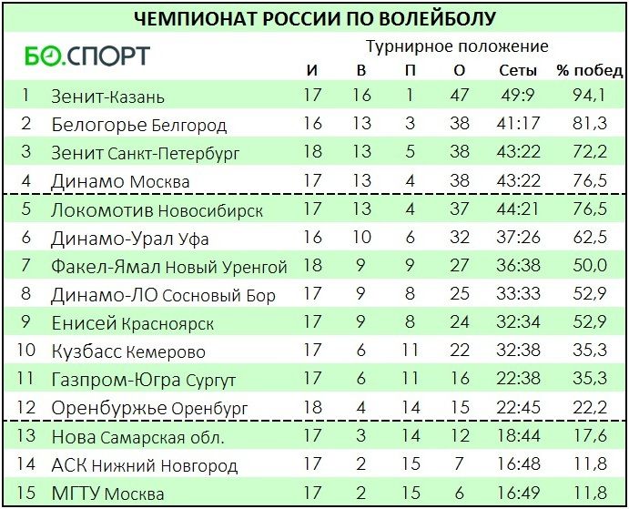 Зенит е трети само с точка повече - 38 точки (13 победи, 5 загуби).