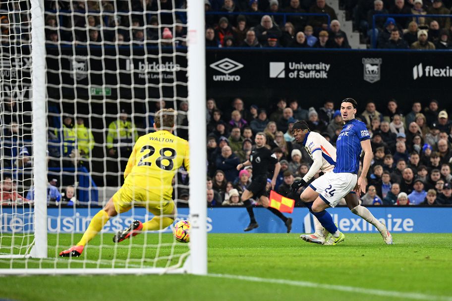 Не беше изненада, че Челси обсади противниковата врата още със старта на второто полувреме. Жоао Феликс пропусна поредната възможност за лондончани, а след това Уолтън изби в корнер силен шут в близкия ъгъл на Мадуеке. Изгелждаше, че изравняването е само въпрос на време и гол наистина падна, но във вратата на гостите. В 53-ата минута груба грешка на Дисаси доведе до контра на Ипсуич и пас на Делап към Омари Хътчинсън, който наказа бившия си тим.