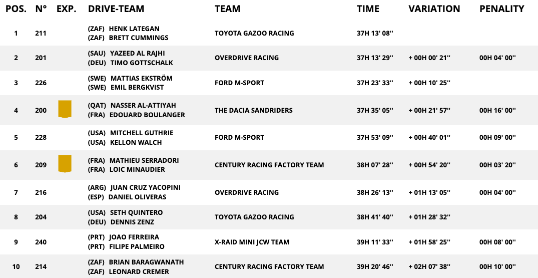 Големият губещ днес бе лидерът е генералното класиране Хенк Латеган (Тойота), който днес завърши 15-ти, изоставайки с близо 20 минути от Мораеш. По-лошото за южноафриканеца бе, че той загуби почти 7 минути от Язед Ал Раджи (Овърдрайв).