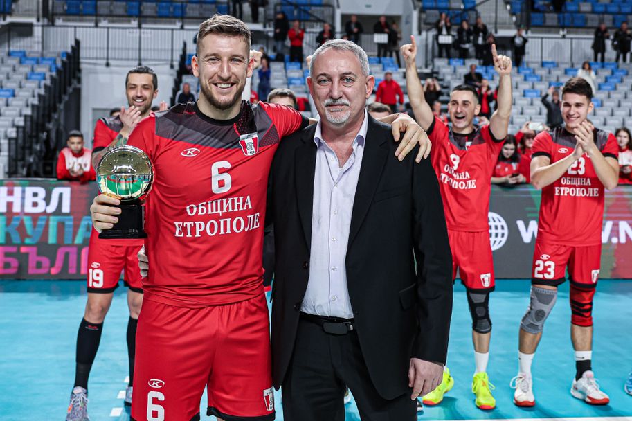 Мъжкият отбор на ВК Етрополе спечели историческа Купа на България във второто ниво на шампионата - Висшата лига след победа над Родопа (Смолян) с 3:0 гейма във финала на надпреварата в "Арена Бургас".
