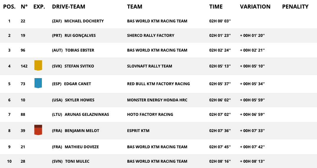 Дохърти е едва вторият пилот от Rally2, който печели етап в рали „Дакар“. През 2022 година това стори и бившият пилот от MotoGP Данило Петручи.