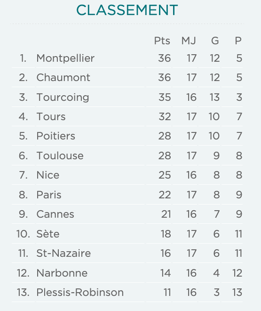 Тулуза е на шестата позиция с 28 точки (9 победи, 8 загуби), Сет е десети с 18 точки (6 победи, 11 загуби).