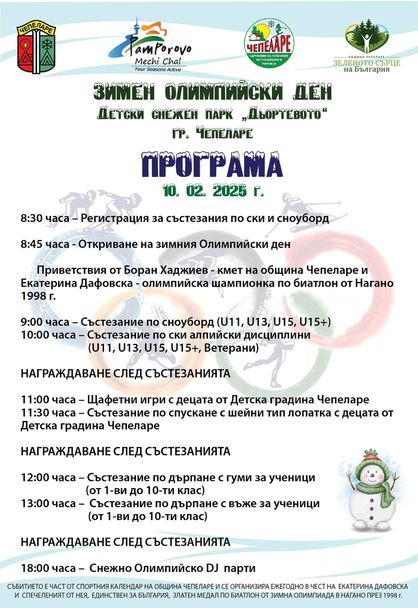 По този повод на 10 февруари (понеделник) в Чепеларе ще се състои спортен празник във възобновения детски снежен парк "Дьортевото".