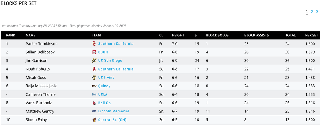 Делибосов, който играе за Калифорнийския държавен университет, Нортридж е номер две в индивидуалната класация за успешни блокади за гейм на колежанското първенство на САЩ - NCAA!