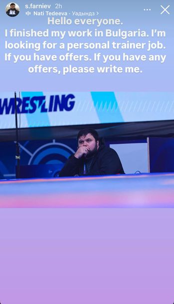 "Здравейте! Приключих работата си в България. Търся работа като личен треньор. Ако имате оферти, моля пишете ми", написа Фарниев, който се забърка в доста скандали в последно време.