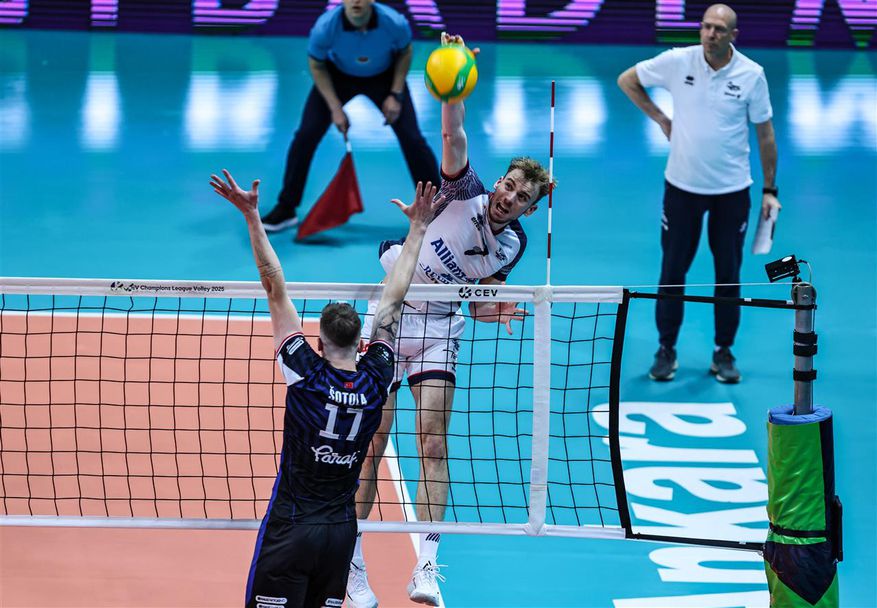 Матей Казийски и неговият италиански отбор Алианц (Милано) загубиха гостуването си на Халкбанк (Анкара) с 1:3 (27:25, 16:25, 21:25, 21:25, 31:33) в първия плейоф от Шампионската лига, който се игра пред 2350 зрители в зала “Зираат Банккарт”.